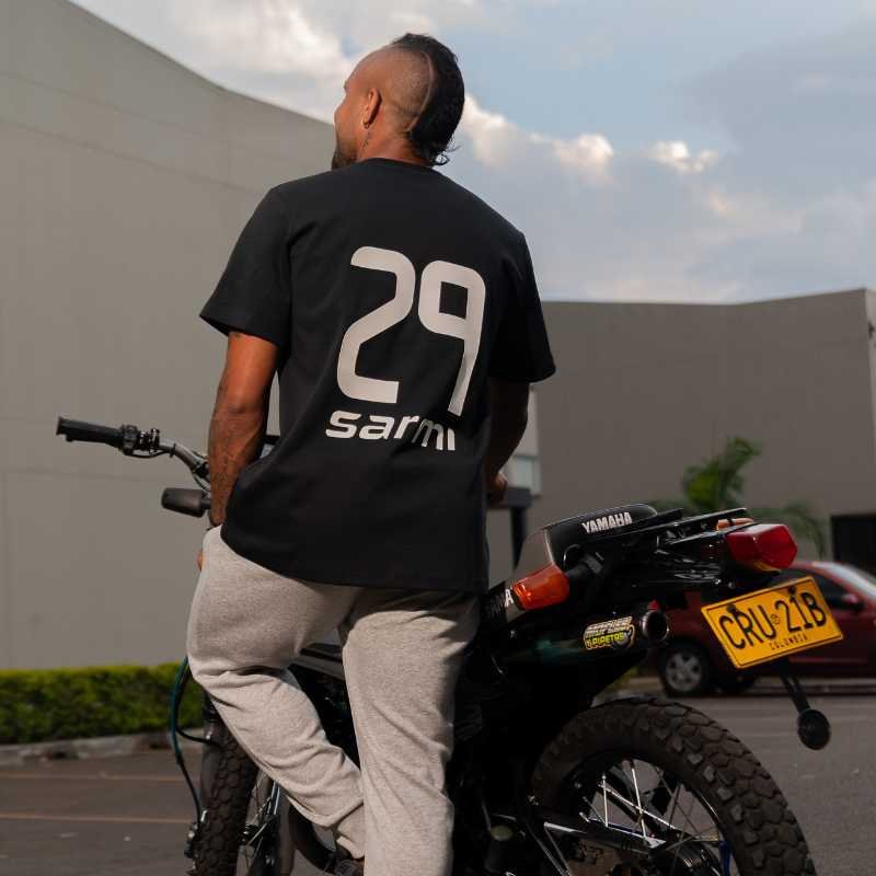 Camiseta oversize 29 con diseño urbano y esencia futbolera. Una prenda inspirada en Andrés Sarmiento, ideal para destacar con estilo y comodidad.