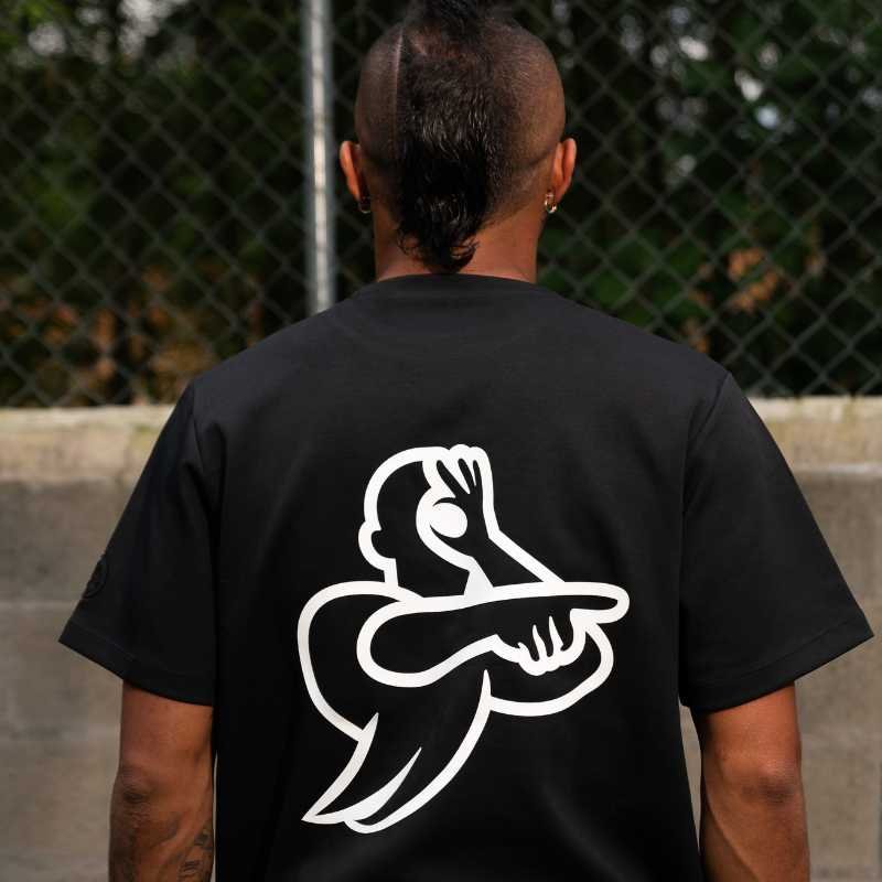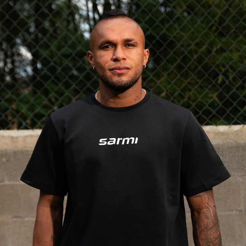 Camiseta oversize negra Sarmi con diseño urbano y esencia futbolera. Una prenda inspirada en la marca de Andrés Sarmiento, ideal para destacar con estilo y comodidad.